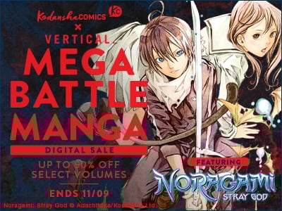 Right now you can get up to 50% off select volume of traditional battle manga where heroes for good fight the odds and forces for evil like Noragami: Stray God, Fire Force, and Yozakura Quartet. But don’t forget to also try unconventional battle manga like the BL ballroom drama, 10 Dance, the fashion forward battle for dreams and friendship, Smile Down the Runway, and the competitive card game manga Chihayafuru. And if you’re looking for something a little more out of this world, you can also try the Tsutomu Nihei sci-fi battle series like Aposimz, BLAME!, Knights of Sidonia! You’ll find all this and more only in the MEGA BATTLE MANGA digital sale!